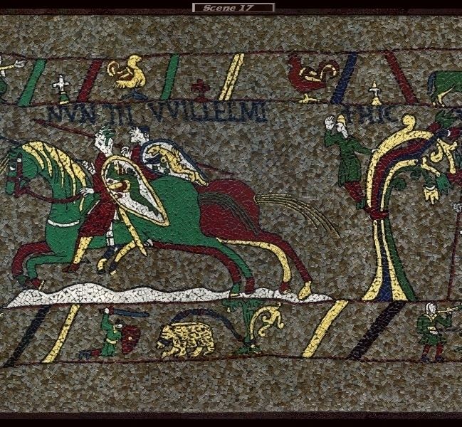 Messenger Shield Messenger Shield LookOut Tree The Aethiop The Cock and the Jewel The Dog, the Cock and the Fox Latin Text The Wolf and the Lion Latin Text Courser Courser Sword Courser Saddle Saddle Lance Lance Girth Band Breast Band Reins Lance Courser Courser Spear Short Tunic Scene 17 The Knight and the Wild-Boar The Goat and the Goatherd Border Decoration Border Decoration Border Decoration Messenger Shield Duke William Messenger Messenger Tower of Rouen The Wolf and the Lion The Wolf and the Shepherd The Eagle and the Kite Latin Text Cushion Throne Sword Sentry Dais Throne Spear Garter Garter Braid Braid Braid Braid Ankle Length Tunic Braided Hem Knee Length Tunic Knee Length Tunic Woollen Stockings Woollen Stockings Cloak Square Brooch Cushion Cloak Spear Sentry Scene Eighteen The Goat and the Goatherd Sword Border Decoration Border Decoration Stockings Earl Harold The Stag at the Pool The Stag in the Ox-Stall The Farmer and the Stork Latin Text Latin Text Tower of Rouen Guy\'s Soldier Harold\'s Soldier Guy\'s Soldier Harold\'s Soldier Saddle Saddle Palfrey Palfrey Palfrey Mane Saddle Saddle Shield Saddle Saddle Short Tunic Lance Woollen Stockings Shield Short Tunic Lance Lance Lance Hawk Circular Brooch Scene 19 The Man, the Horse, the Ox and the Dog The Virgin and the Suitors Shield Border Decoration Border Decoration