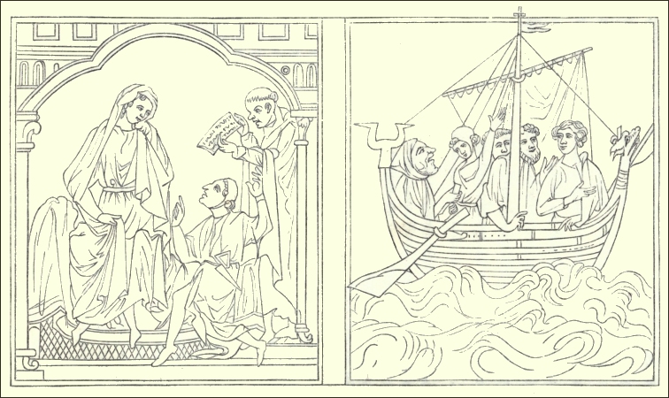 Edward and Alfred heard of Kenut's death, and were much rejoiced; for they expected to have the kingdom, seeing that they were the nearest heirs. So they provided knights and ships, and equipped their fleet; and Edward, having sailed from Barbeflo[56], with forty ships, soon arrived at the port of Hantone, hoping to win the land. But the Englishmen, who were aware that the brothers were coming, would not receive them, nor suffer them to abide in the country. Whether it was that they feared Herout the son of Kenut, or that they liked him best; at any rate they defended the country against Edward; and the Normans on the other hand fought them, taking and killing many, and seizing several of their ships. But the English force increased; men hastened up from all sides, and Edward saw that he could not win his inheritance without a great loss.He beheld the enemy's force fast growing in numbers, and that he should only sacrifice his own men; so fearing that, if taken, he himself might be killed without ransom, he ordered all his people to return to the ships, and took on board the harness. He could do no more this time, so he made his retreat to Barbeflo.