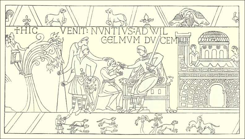 William passed along the plain, leading a great company of Normans, seeking the two viscounts, and calling out on the perjured men to stand forth. Those who knew them pointed them out on the other side among their people.