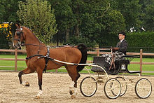 The terms harness horse and light harness horse refer to horses of a lighter build, such as traditional carriage horses and show horses, and are not terms generally used to denote "heavy" or draft horses. Harness horse breeds include Heavy warmblood breeds such as the Oldenburg and Cleveland Bay, as well as lighter breeds such as the Hackney, and in some disciplines, such as combined driving, light riding breeds such as the Thoroughbred or Morgan may be seen.