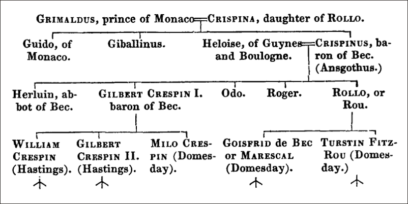 In honour of the second Henry, of the line of Roul, I have told the tale of Roul, of his noble parentage, of Normandy that he conquered, and the prowess that he showed. I have recounted the history of William Lunge-espee, till the Flemings killed him by felony and treason; of Richard his son, whom he left a child; [of the second Richard, who succeeded him; of his son the third Richard; who was soon followed by Duke Robert his brother, who went to Jerusalem, and died by poison; and now the tale will be of William his son, who was born to him of the 'meschine, Arlot of Faleise[9].']