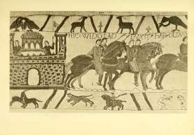 and calling them back to their duty. The Norman troops rallied, and the too-daring English were cut in pieces. The Bishop's portrait, as shown in the tapestry, differs in some respects from the description given by Wace, who tells us [1]