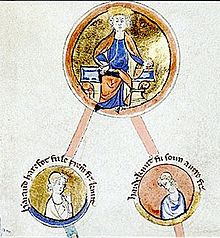 The Prose Brut chronicle was an Anglo-Norman work, covering British and English monarchs from Brut (Brutus of Troy) to the death of Henry III in 1272. It was probably written during the reign of Edward I (reigned 1272–1307), though the oldest surviving manuscript dates to 1338. The text often includes notable errors. The original author remains unknown, but there were a number of continuations by different hands, extending the story to the Battle of Halidon Hill (1333).[33] The material on Harold Harefoot is rather unflattering. The author considered both Harold and Harthacnut to have been sons of Cnut and Emma of Normandy. He proceeds to portray Harold as follows: "...He went astray from the qualities and conduct of his father King Cnut, for he cared not at all for knighthood, for courtesy, or for honour, but only for his own will...". He accuses Harold of driving his own mother Emma out of England, by the advice of Godwin, Earl of Wessex. He paints Harthacnut in a more favorable light.[34]