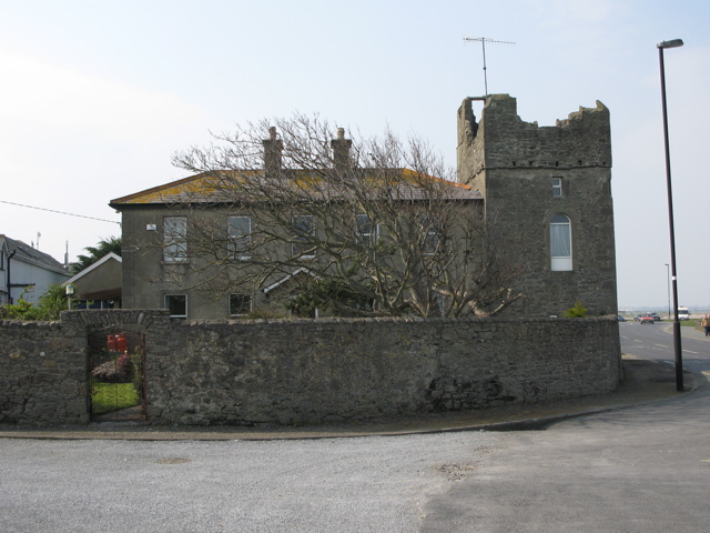 a square edifice erected on a rock that overhangs the sea, and having a farm-house attached to it. According to tradition this castle was founded in the fifteenth century by one of the sept of de Bermingham.